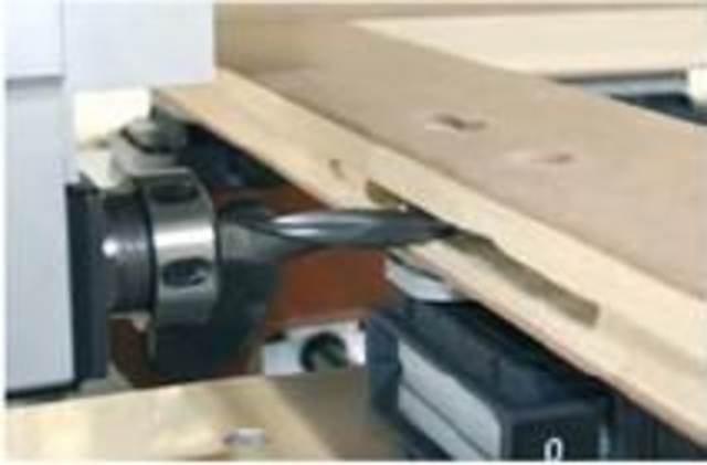 - Vrtací (kolíkovací) hlava je vybavena ýë. äâčăŕňĺëüem o výkonu 1,7kW, 14-ti vertikálními vřeteny (9 v ose X a 5 v ose Y) s roztečí 32mm, třemi dvojitými horizontálními vřeteny (dvě vřetena v ose X a jedno v ose Y) s roztečí 32mm. Zdvih vřeten je 70mm, max. průměr nástroje 35mm, upínácí průměr vrtáků 10mm s max. počtem otáček vrtáků 6.000 / min.